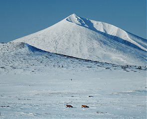 Недалеко от зимника Анавгай-Тигиль, в верховьях рек Хайрюзовой, Тигиль и Анавгай, возвышается величественный вулкан Анаун. Его безупречный конус, увенчанный острой вершиной, словно гигантский монумент, пронзает небо на высоту 1828 метров. Склоны исполина, изрезанные глубокими ущельями с северной стороны, покоятся на обширном лавовом «пьедестале», раскинувшемся на 15 километров. Этот исполин – не просто геологическое образование, он хранитель древней легенды, передаваемой коряками из поколения в поколение.