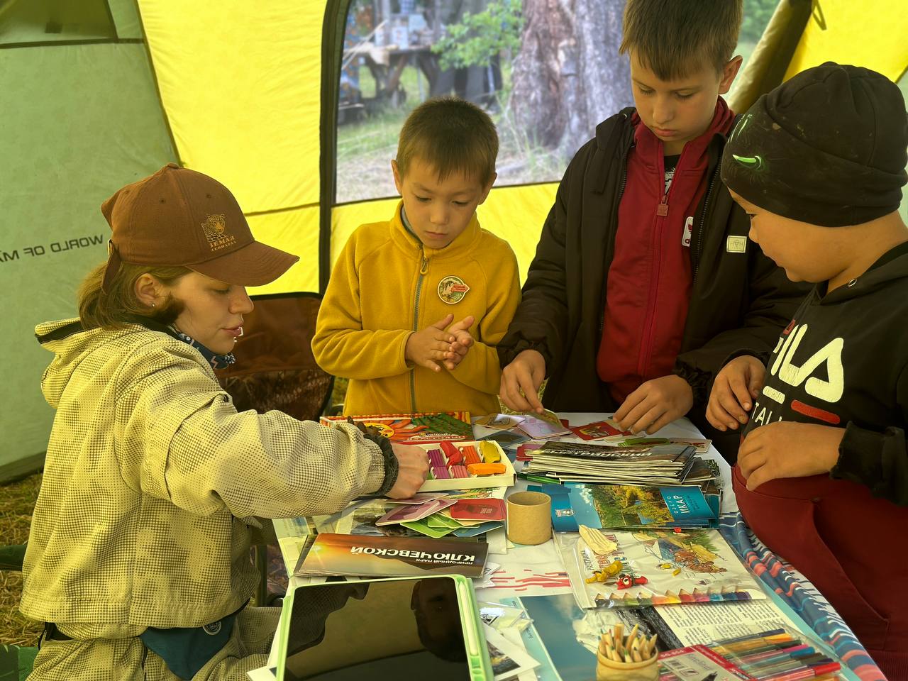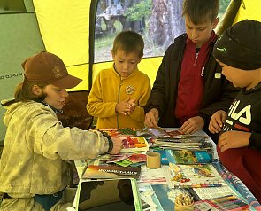 Специалисты Сети природных парков «Вулканы Камчатки» провели игры, обучая гостей распознаванию следов животных и правилам сортировки мусора, рассказывая о хрупкой экосистеме и важности бережного отношения к природе. Разноцветные буклеты и карты парка напомнили о богатстве и красоте этого уникального уголка Камчатки.