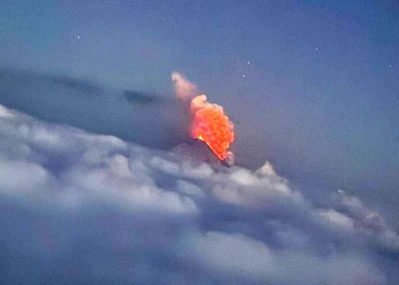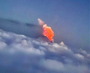 На Ключевском вулкане зафиксировали в ответ на мощное землетрясение магнитудой 8,8 выброс пепла на высоту 6 километров над кромкой кратера.